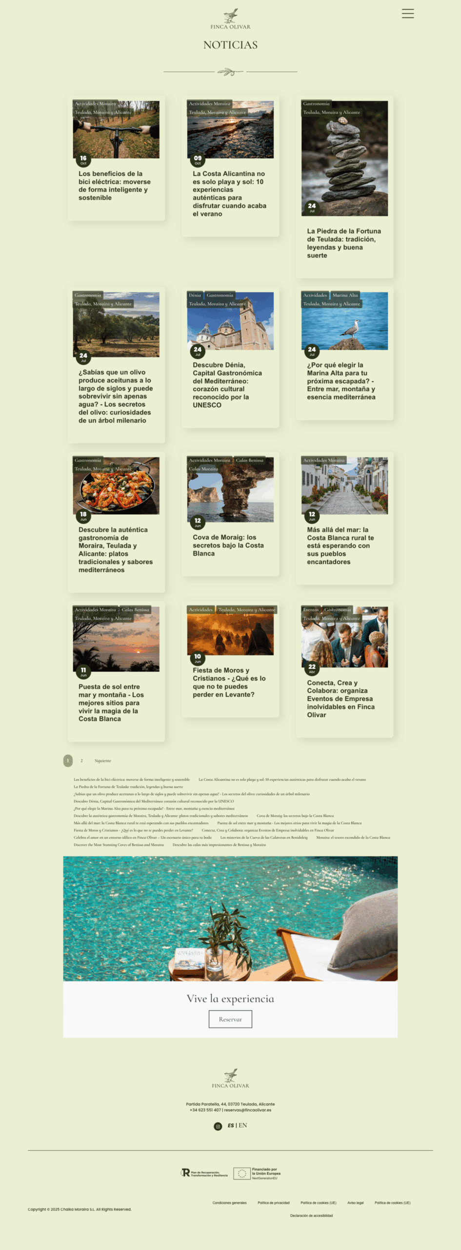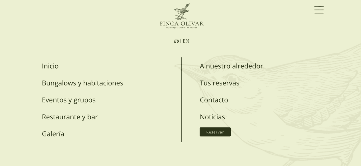 Fincaolivar.es es la web de un hotel con encanto que destaca por su estética elegante, cálida y natural. Su diseño transmite calma y sofisticación, con una paleta de colores suaves y una cuidada presentación fotográfica que refleja a la perfección el entorno sereno del lugar. La navegación es clara y fluida, permitiendo al visitante descubrir con facilidad sus espacios, bungalows, piscina y zonas comunes, todo presentado con un estilo refinado y coherente con la filosofía del hotel.