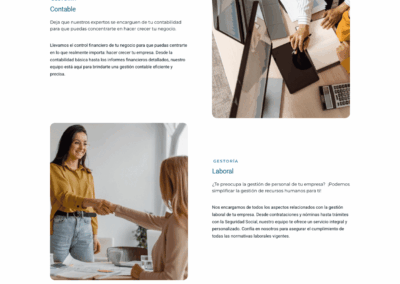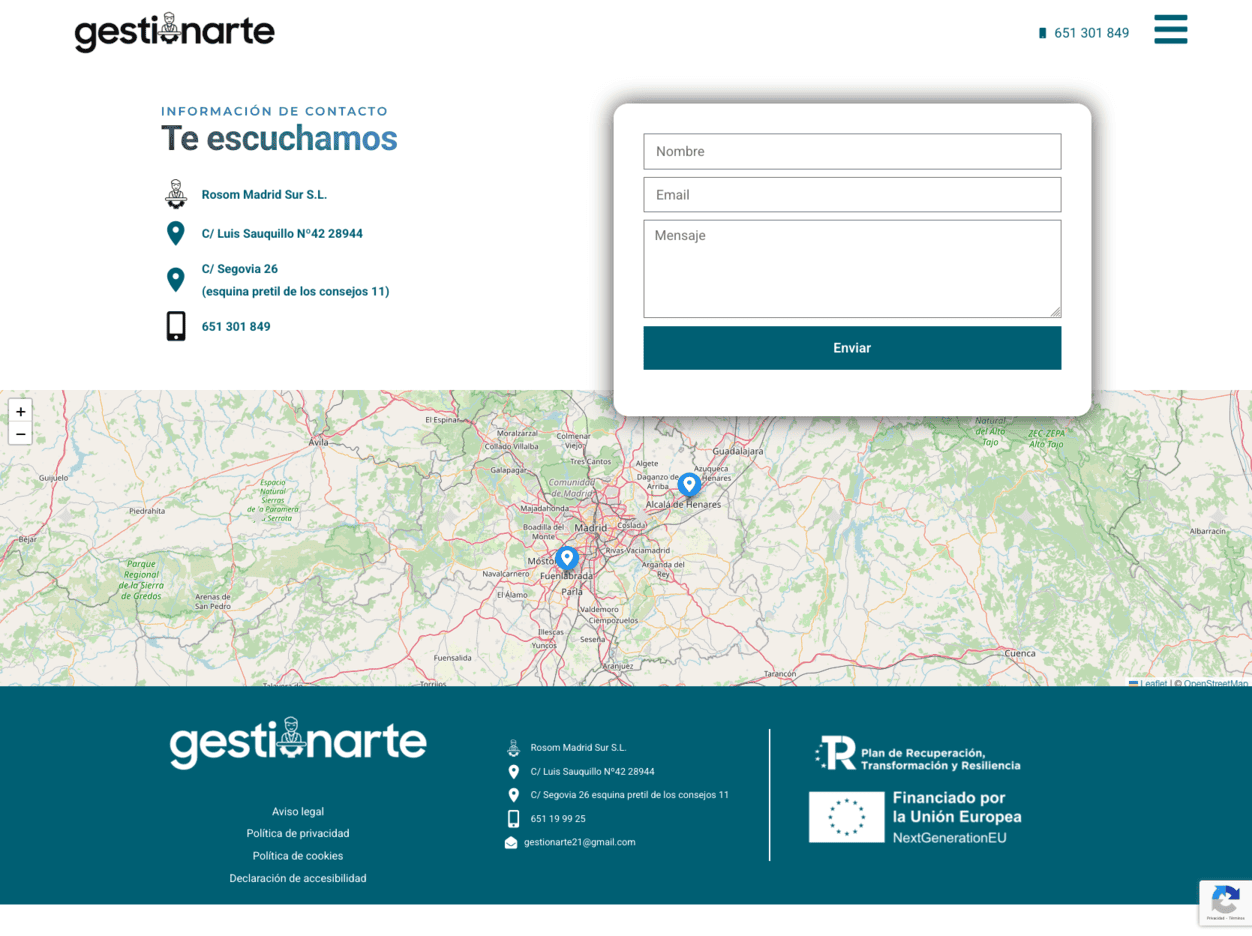 Gestionarte.net es una asesoría moderna y cercana que ofrece servicios integrales diseñados para simplificar la vida de autónomos y empresas. Su web presenta un diseño claro y funcional, con un enfoque práctico que transmite confianza y profesionalismo. Desde el primer vistazo, la experiencia de usuario refleja el compromiso de la marca con la eficiencia y la atención personalizada, facilitando el acceso a información clave y a sus servicios online de forma rápida e intuitiva.